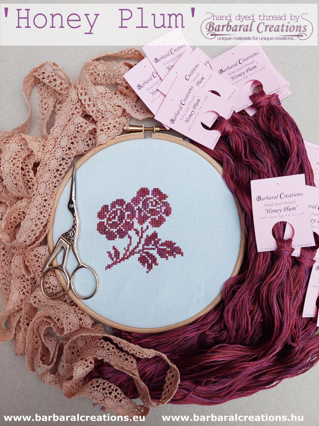 Kézzel festett pamut hímzőfonal - Honey Plum